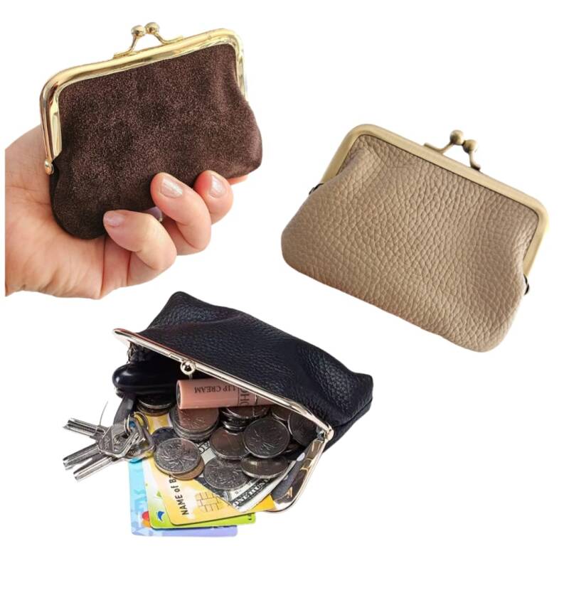 Leder knipportemonnee Beige
